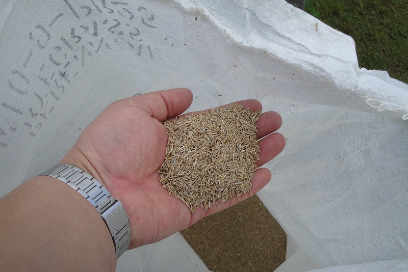 そのため、今生えている芝生の上に、冬の生える芝生の種をまきます。